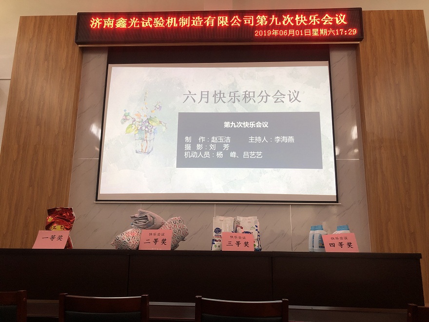 送走五月的芬芳,迎来六月的时光,在这个阳光明媚的季节,又逢“六·一”来临,济南鑫光试验机制造有限公司召开了第九次积分制管理快乐会议,并取得圆满成功!本次会议由电气部李海燕主持。