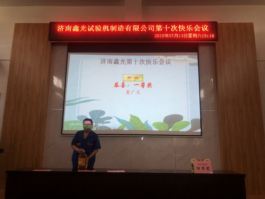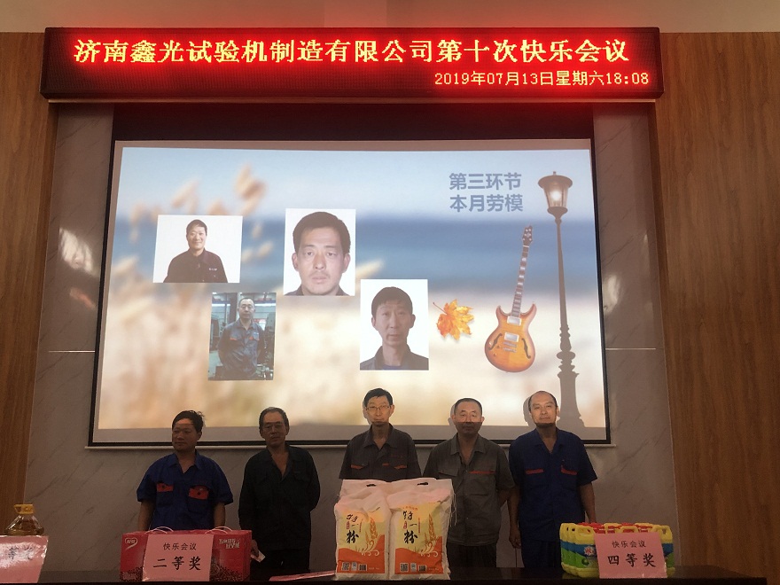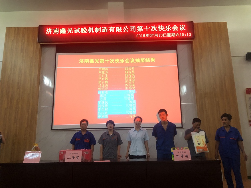 鑫光公司第十次积分制管理快乐会议圆满落下了帷幕,在如此优秀且积极向上的企业文化中,员工们所迸发出的工作激情也是公司不断向前发展的源泉,作为专业的试验机生产厂家,我们会继续努力为消费者提供更加优质的产品,更加完善的服务!想了解更多关于公司的详细信息,请关注微信公众号或公司官方网站www.sdxgyq.com,获取更多详情哦!